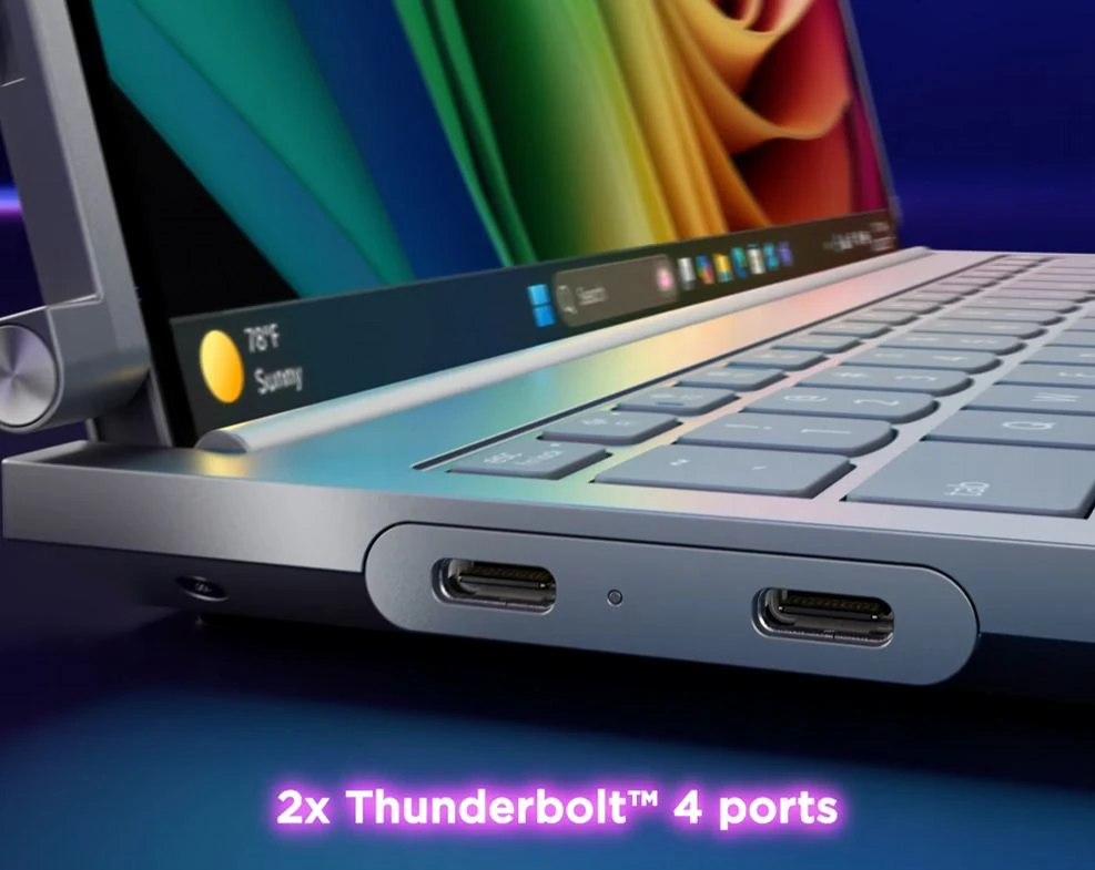 CPUには最新の「Intel Core Ultra 200V」を採用。最大32GBのLPDDR5X RAMと最大1TBのSSDを搭載しており、純粋なノートPCとしても優れたスペック構成となっています。