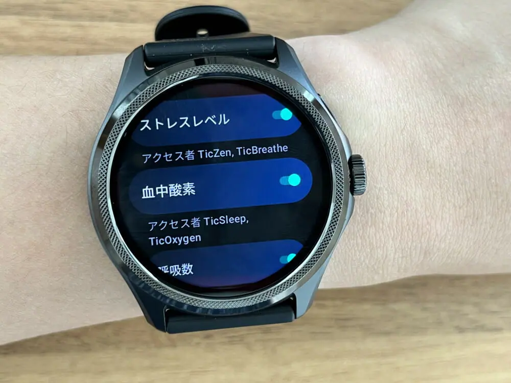 運動計測以外にも、心拍数測定、血中酸素飽和濃度測定、睡眠管理、ストレス管理など、様々な健康モニタリング機能が用意されている。