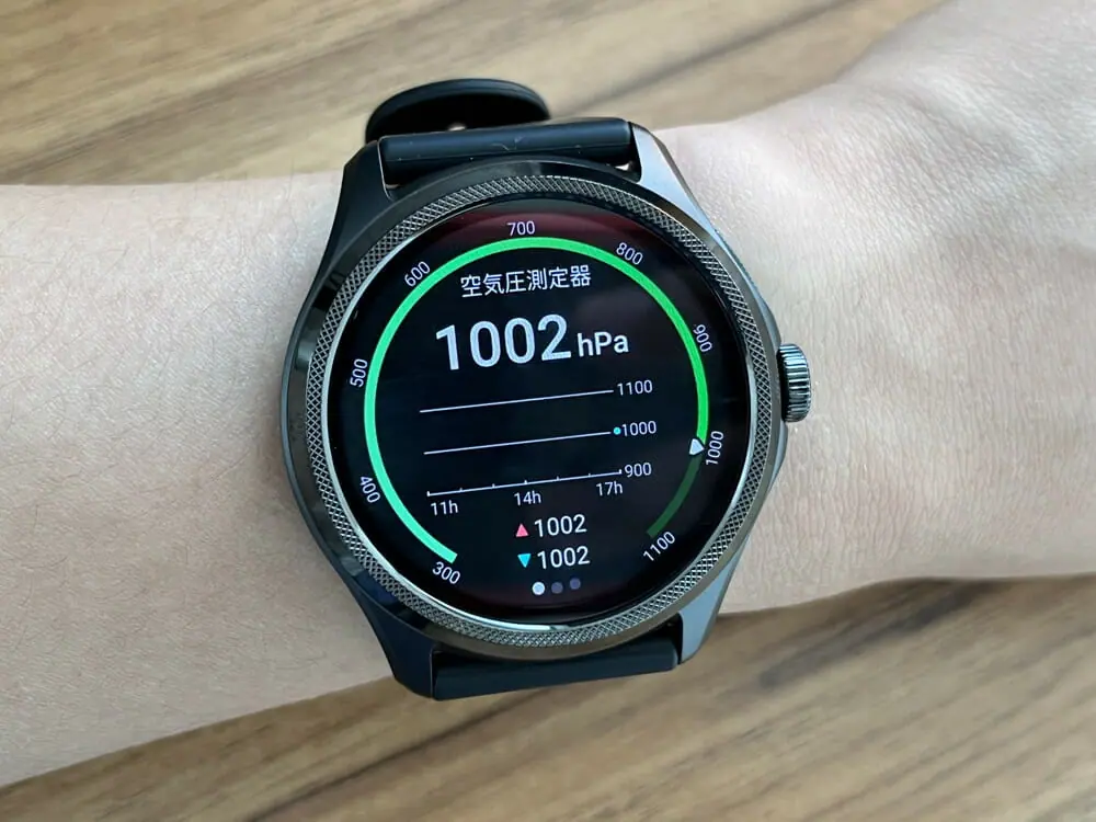 ▼空気圧測定器など、アウトドアアクティビティに役立つ機能も豊富に搭載。
