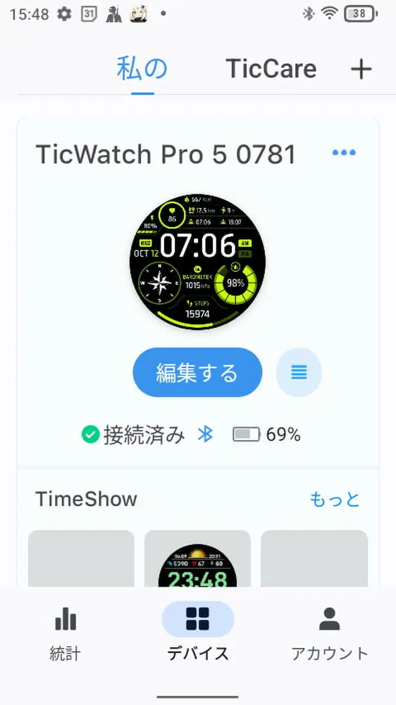 アプリ(スマホ・タブレット端末)とのペアリングが完了すると、端末上でスマートウォッチの状態を確認したり、データの分析や機能のカスタマイズなどを行うことが可能となる。