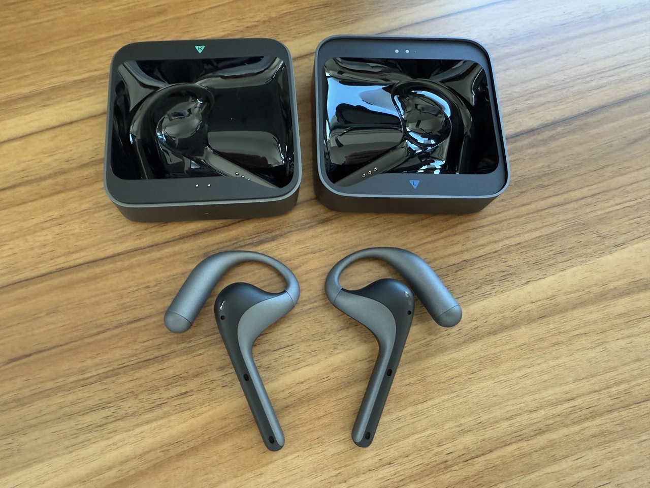 オープンイヤーデザインのイヤホンの装着感は実に快適。耳穴を塞ぐカナル型と比べて清潔感があるため、不特定多数の人々とも抵抗感なくイヤホンを共有できるだろう。