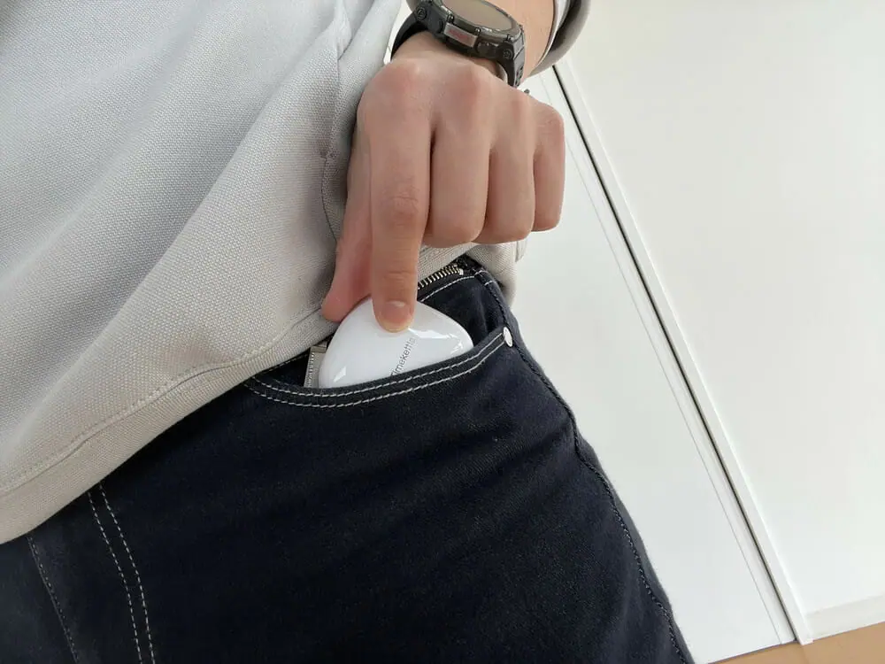 ▼ケース重量は約64gと非常に軽く、ズボンのポケットにもラクラク入るサイズだ。