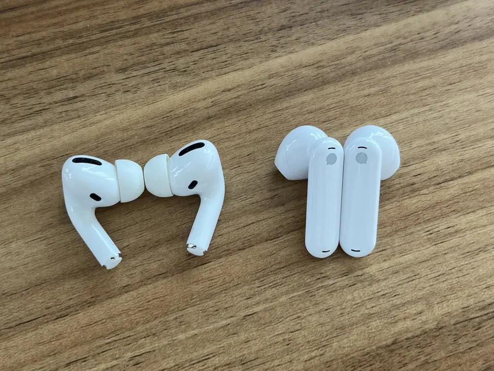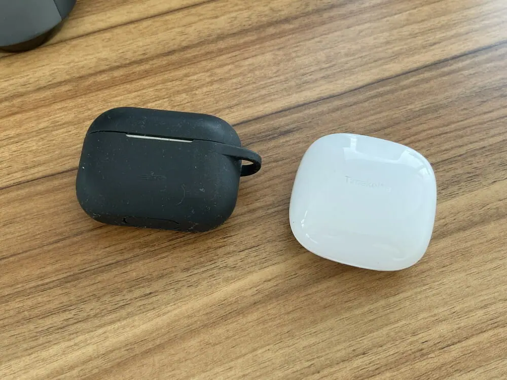 ▼本製品(画像右)と私が所有するAirPods Pro(画像左)を並べた様子。