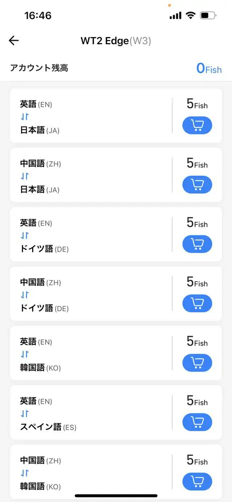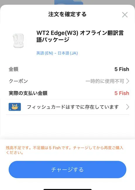 ▼オフライン翻訳言語パッケージの購入には、"Fish" と呼ばれる特殊なポイントを利用する。