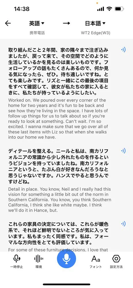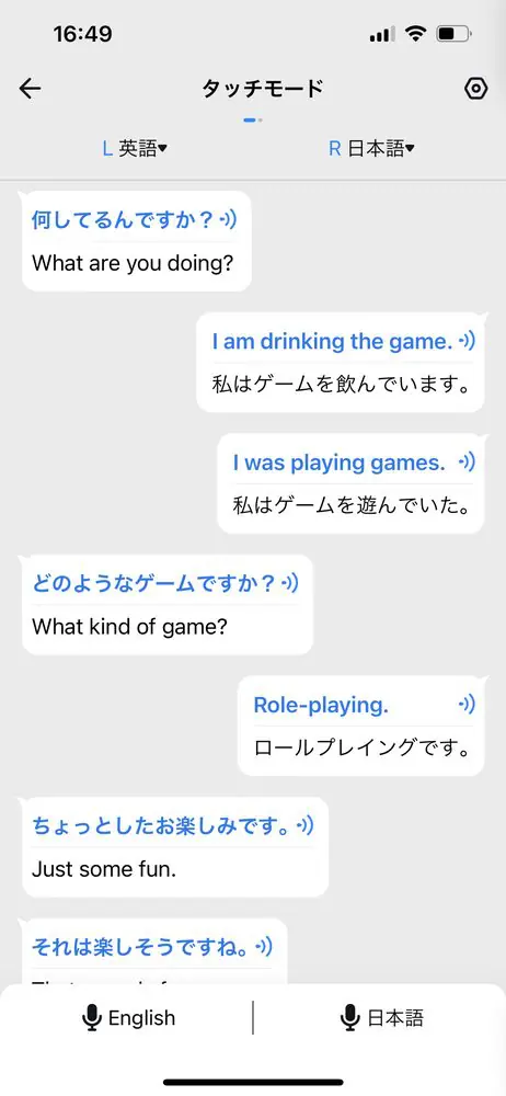 ▼もしくは、アプリ上の画面をタップすることでも、話者を切り替えることが可能。