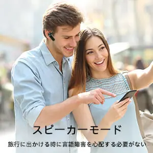 「スピーカーモード」は、スマートフォンのスピーカーを使って会話ができるモードだ。道を聞いたり、お店で注文したいときなどに役立つだろう。