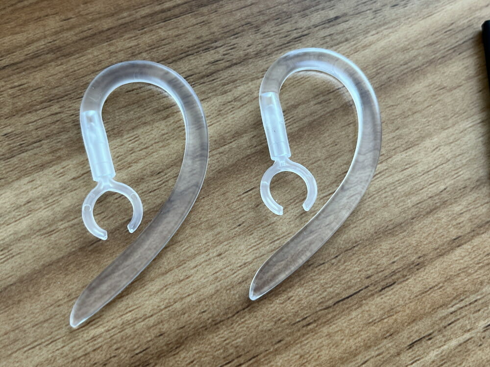 ▼安定した装着感を実現するためのイヤーフックが1セット付属。