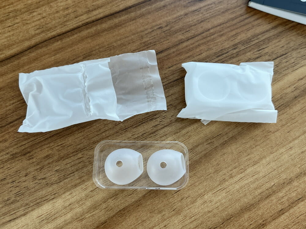 ▼耳の大きさに合わせて交換できるイヤーチップが2セット付属。