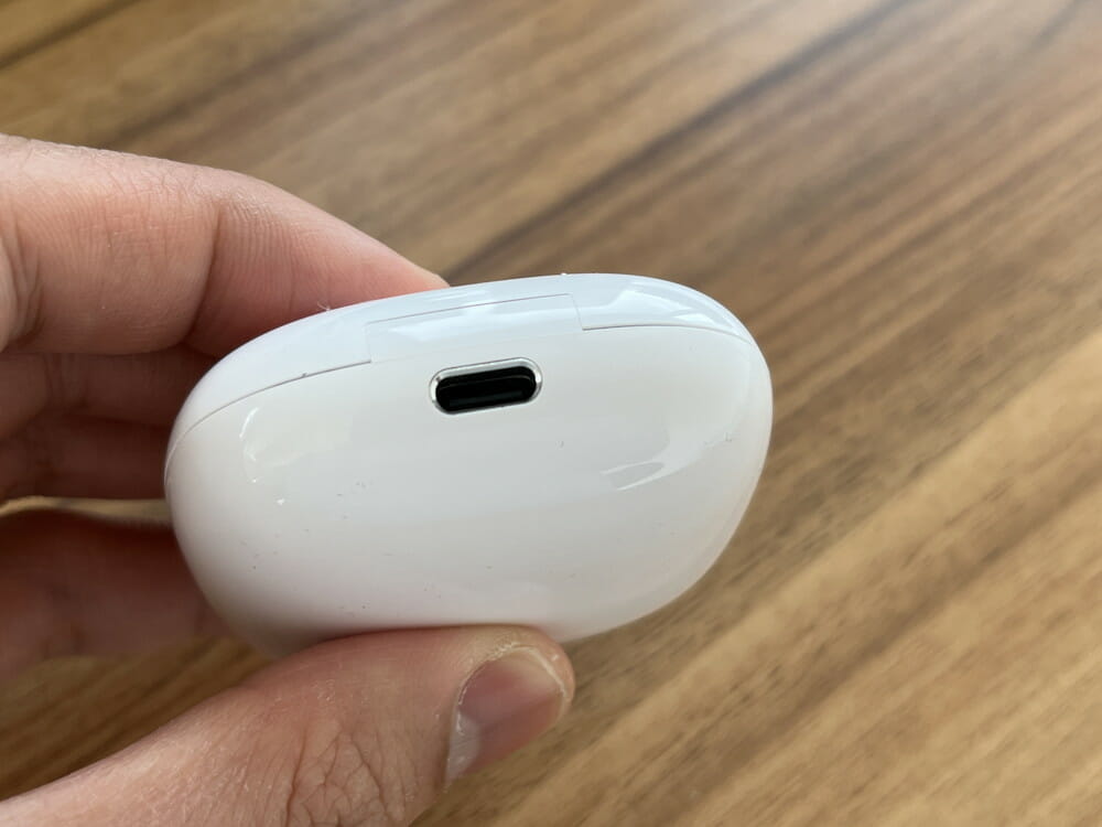 製品には収納とイヤホンの充電器を兼ねた充電ケースが付属する。Type-Cケーブルによる有線充電に対応。