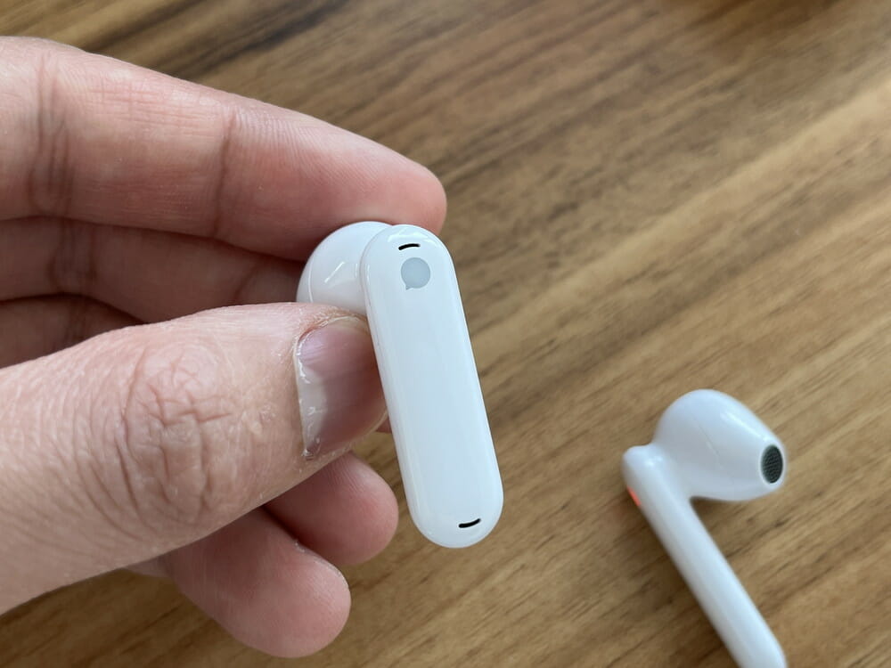 ▼互いのイヤホンの側面をタッチすることで、会話する側・聞く側を切り替えることが出来る。