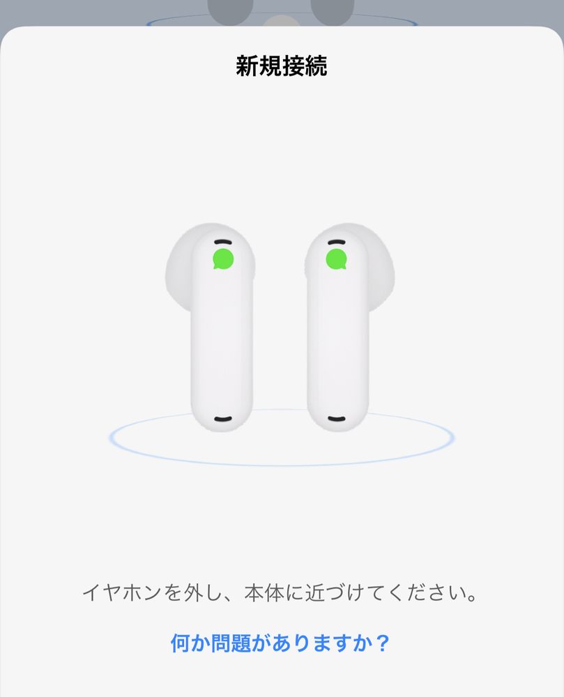 そしてケースから左右のイヤホンを取り出し、アプリ起動中のスマホへ近づけると、自動的に認識されて接続が完了する。