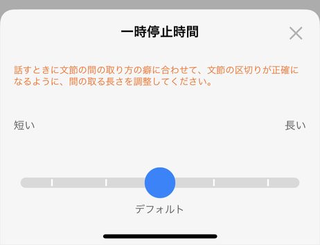 なお、文節の間の取り方の癖に合わせて会話の一時停止時間を調節する機能や、周囲の環境音の大きさに応じて会話音声の抽出強度を上げる機能なども用意されている。