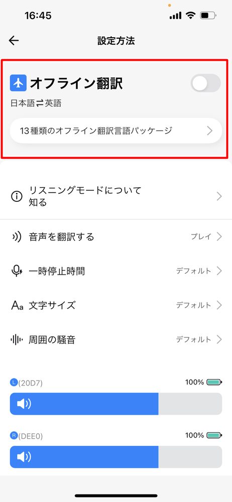 また「リスニングモード」では、相手にスマートフォンに向かって話してもらうことで、画面上には文字起こし、イヤホンには翻訳音声がノンストップで流れていく。