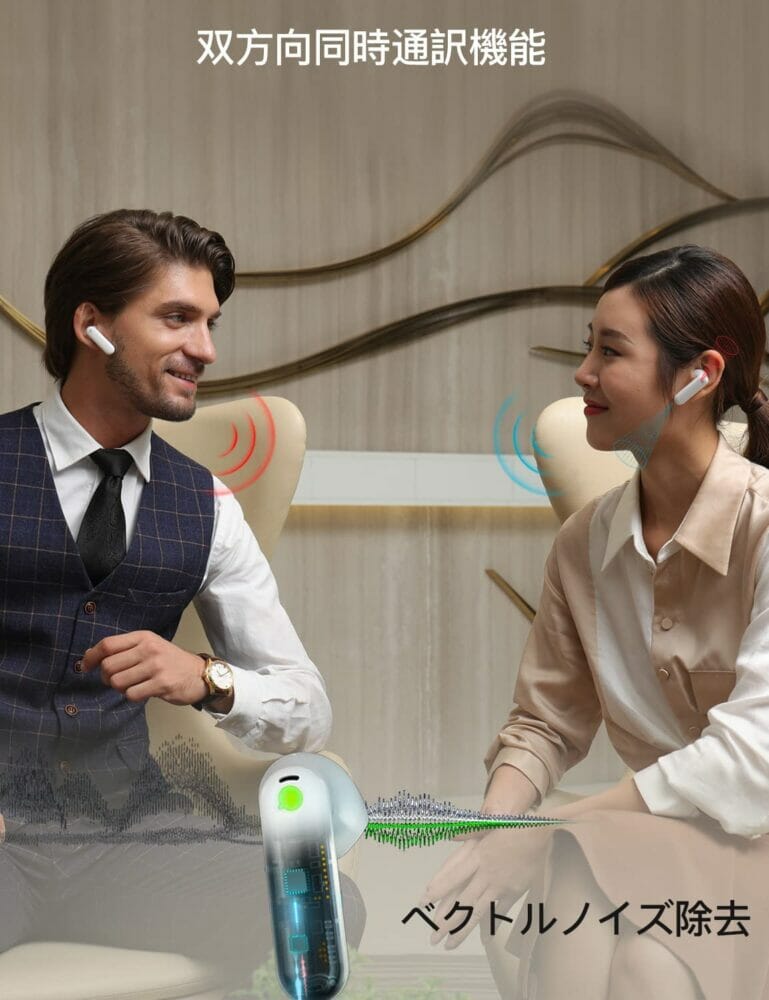 以上の通り、自然でストレスのない同時翻訳を行うことのできる、高性能なイヤホン型翻訳機となっている。