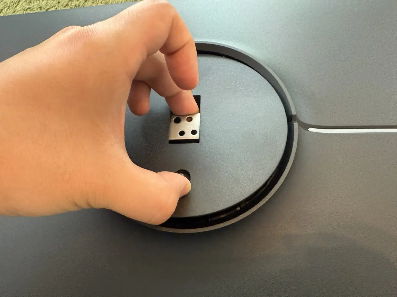 そして、付属のネジを使用して、取り外したプレートにスタンドを固定する。
