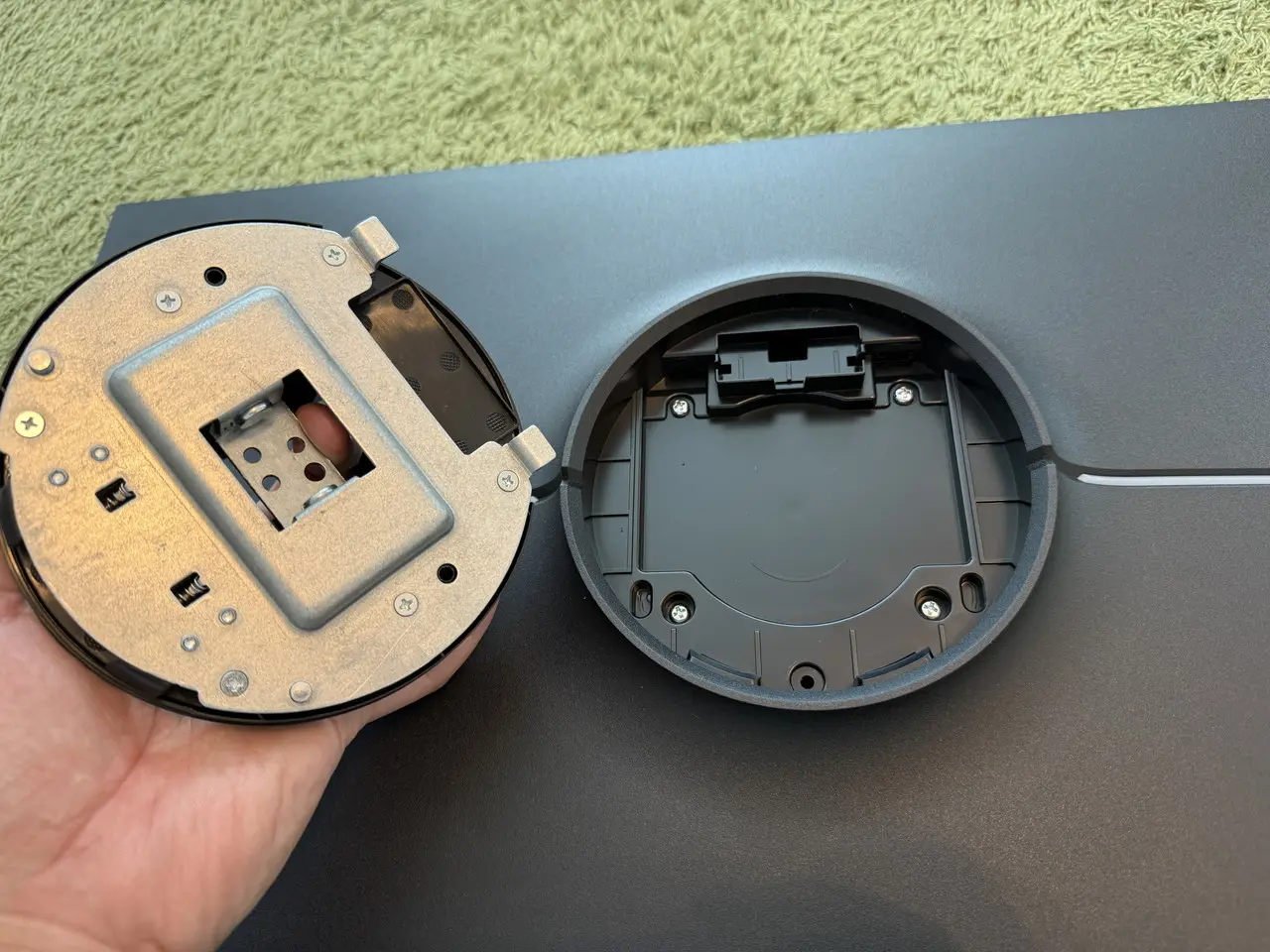 あとは、完成したスタンド&ベース部分を、モニター背面に挿入して取り付ける。