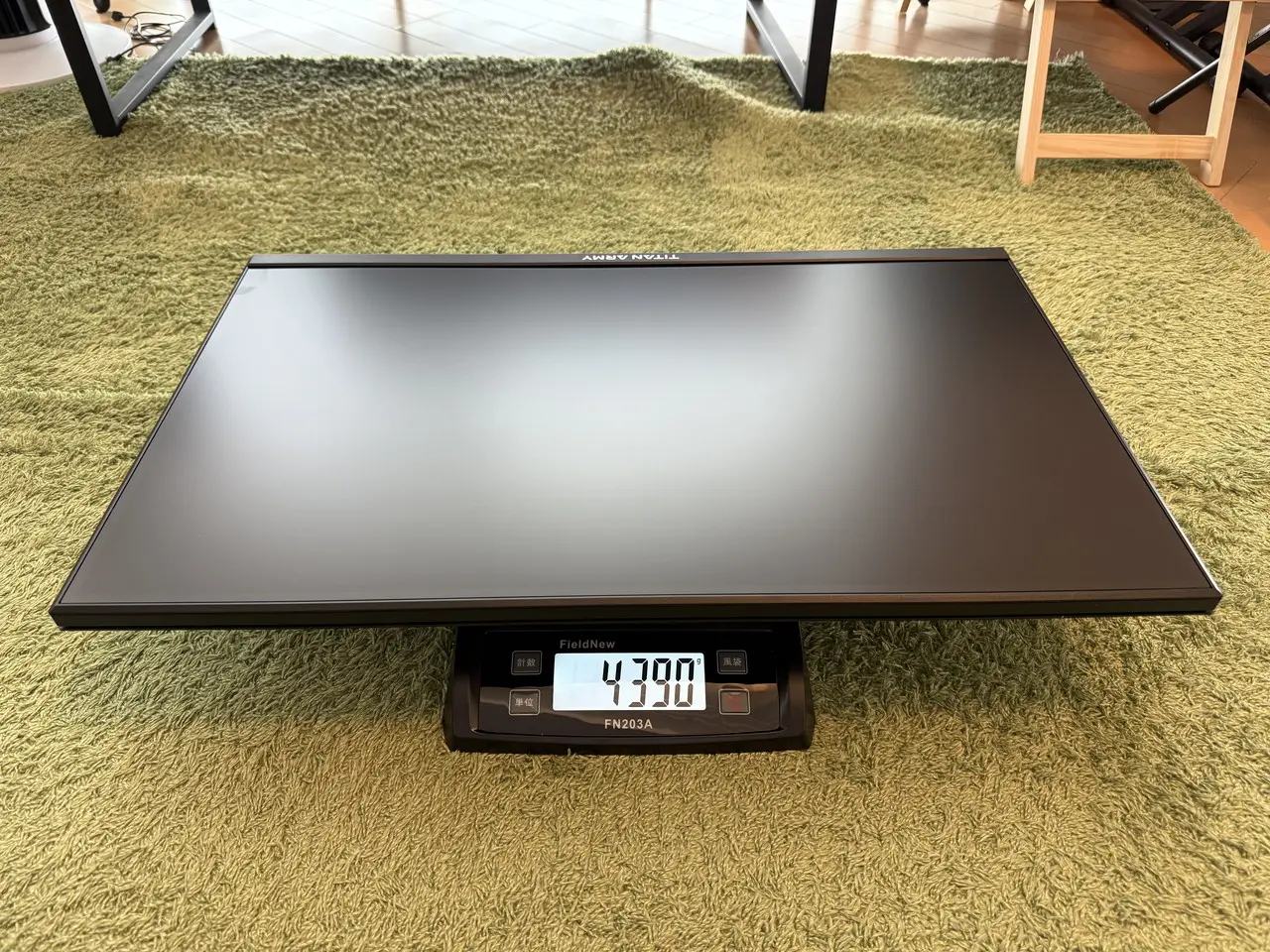 ▼スタンド&ベース非装着時のモニター重量は、実測で約4,390g。