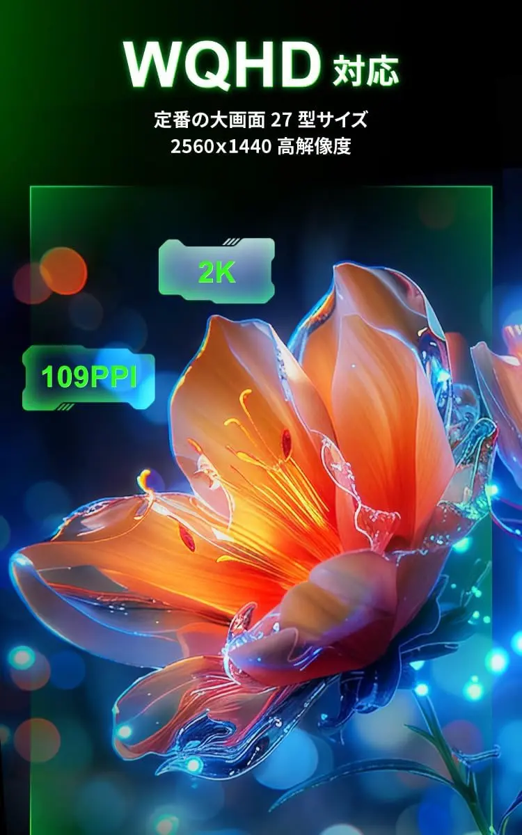 PS5やニンテンドースイッチなど、WQHD出力非対応のゲーム機ではフルHD解像度にダウンスケールされるため、おもにPCゲームや普段使いメインの方にこそ最適なモニターと言えるだろう。