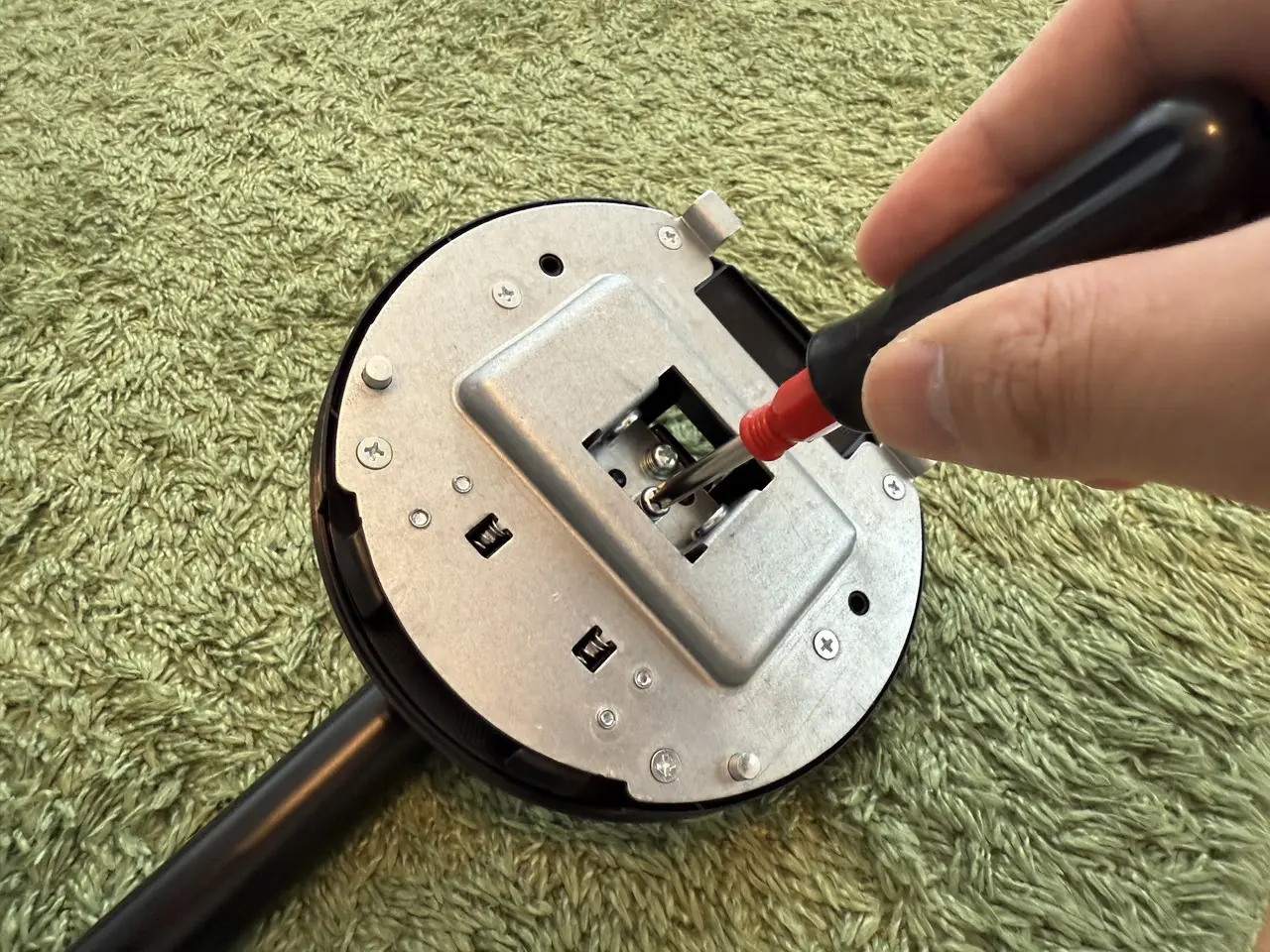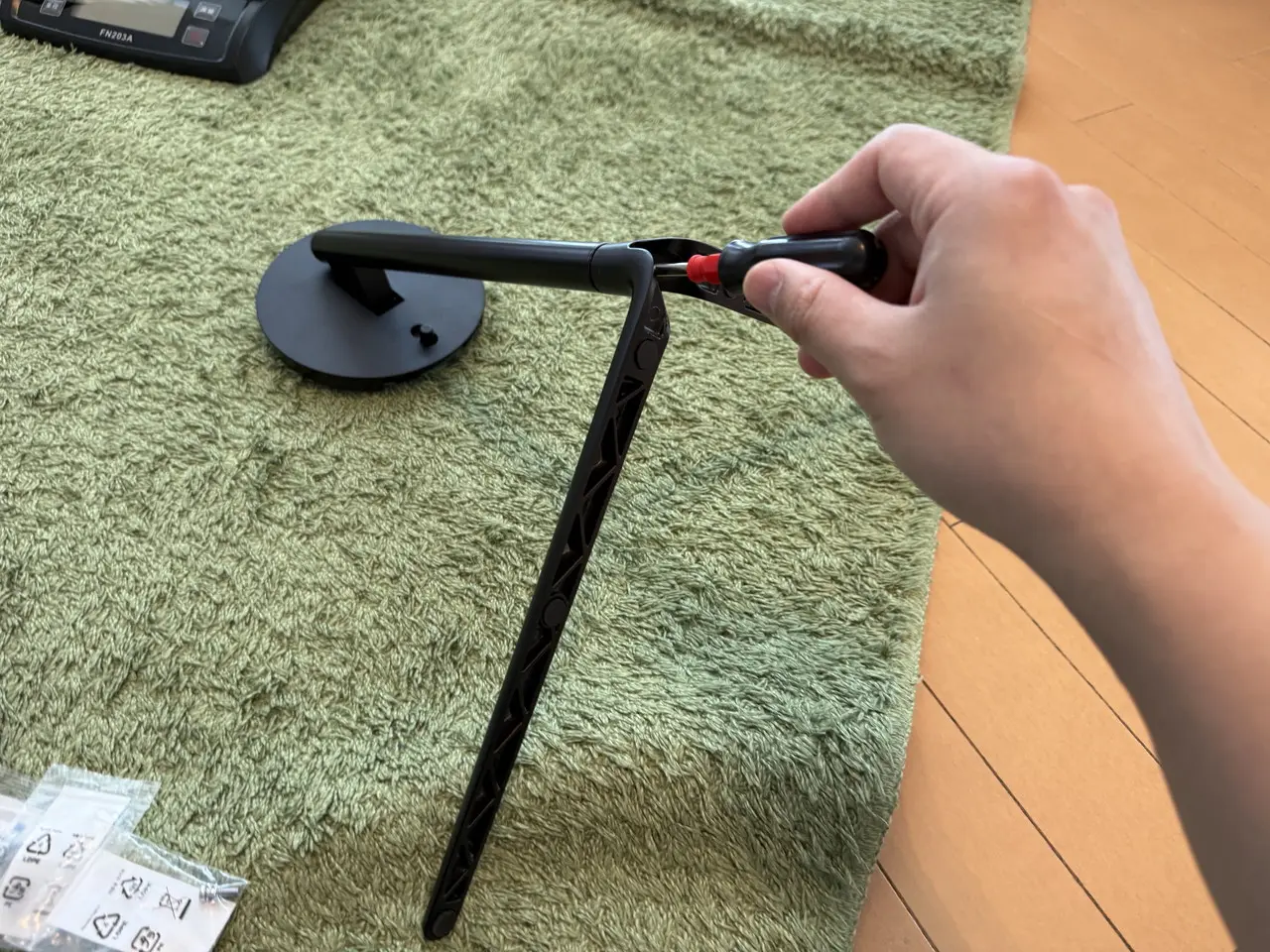 続いて、同じく付属のネジを使用して、スタンド下部にベースを固定する。