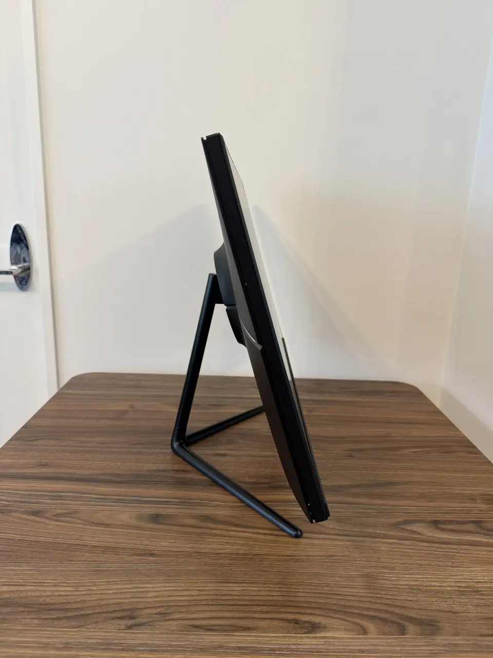 このように、モニター自体は非常にシンプルで無駄のないデザインとなっている。一般的な会社のオフィスに設置しても違和感はないだろう。