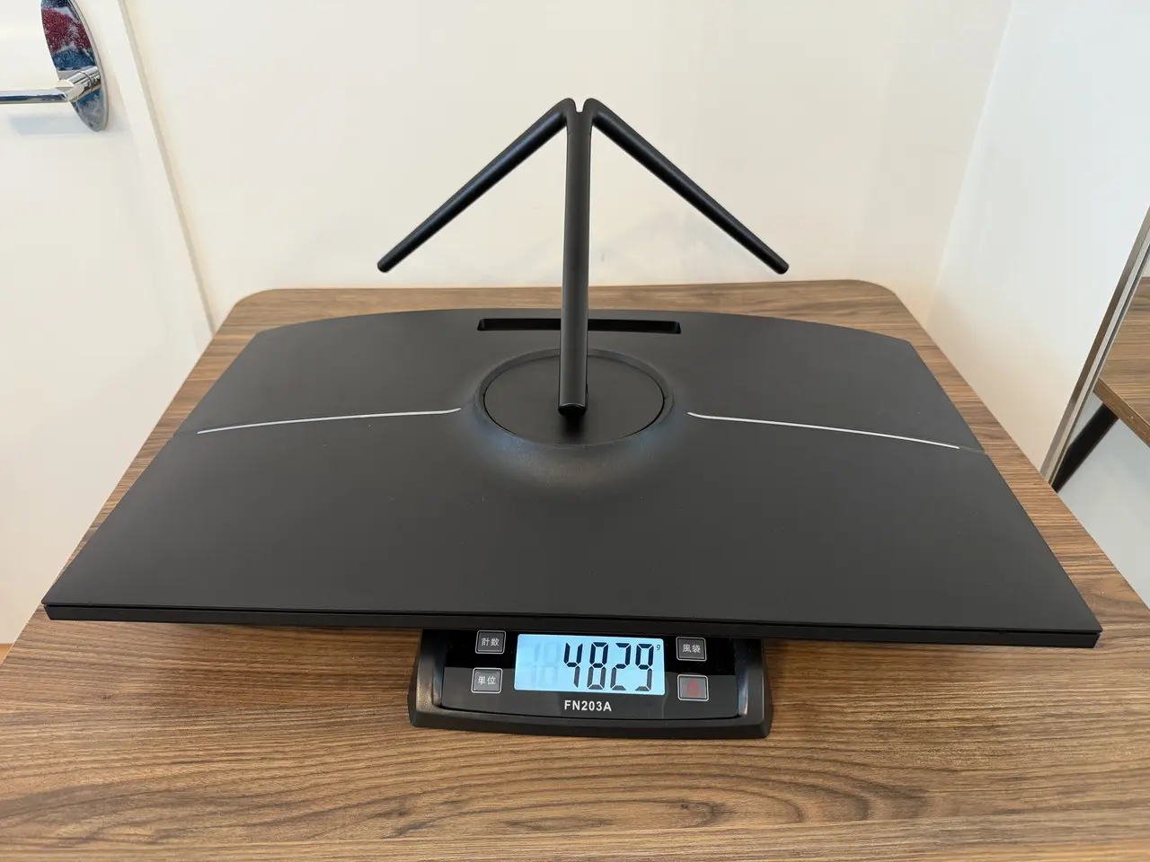 ▼ベース&スタンド装着時のモニター重量は、実測で約4.83kg。