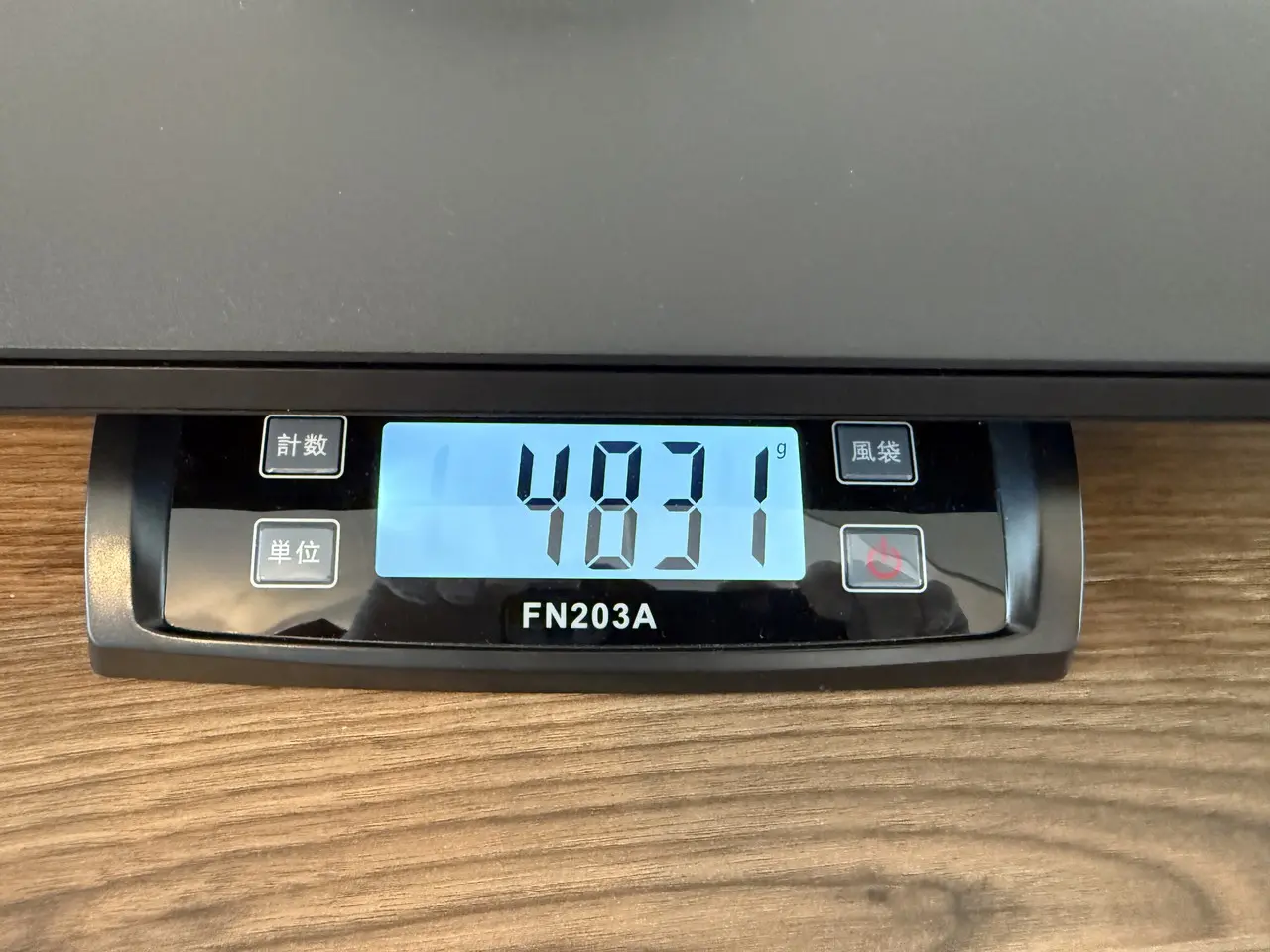 | 本体重量 | 約4.39kg (スタンド&ベース無し) ※実測値 約4.83kg (スタンド&ベース込み) ※実測値 |