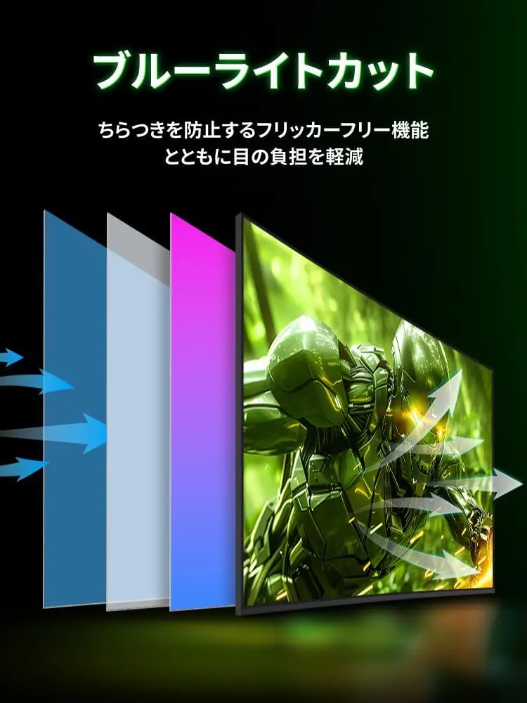 ブルーライト機能も搭載しており、眼への負担を軽減。長時間の作業用モニターとしても活用できるだろう。