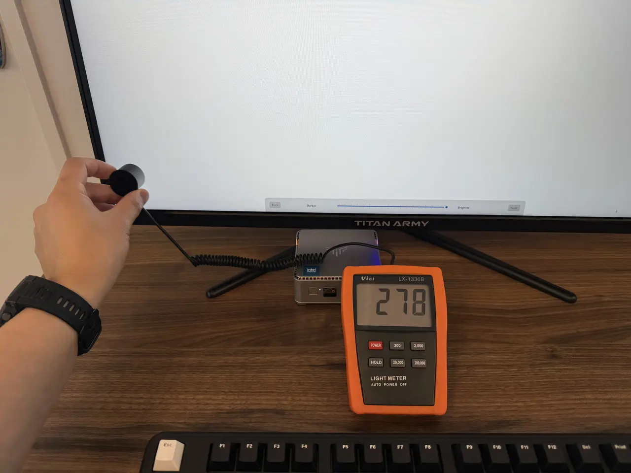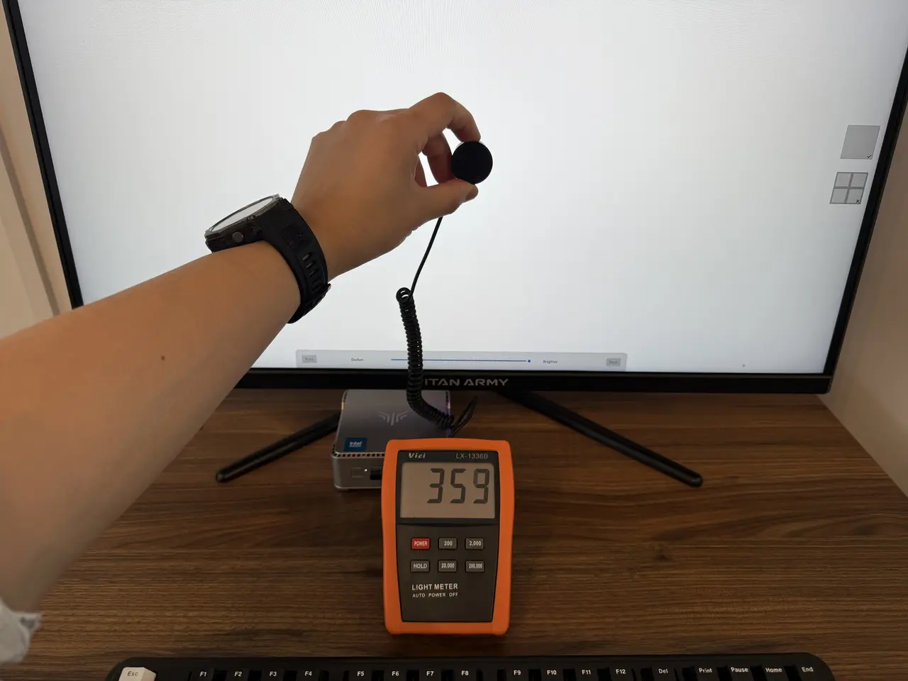 また、デジタルルクスメーター「Vici LX1336B」を使用して、画面輝度についても確認してみた。