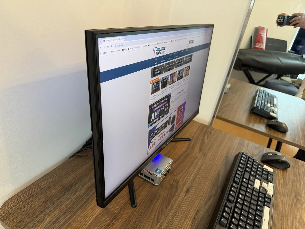 2560×1440(WQHD)解像度対応により、27インチの画面サイズに対して非常に鮮明な描画を実現。文字の輪郭もシャープで、ウェブサイト閲覧時や資料作成時でも、非常に読みやすかった。