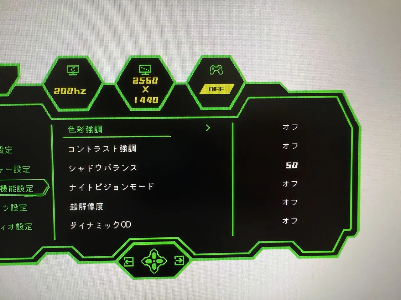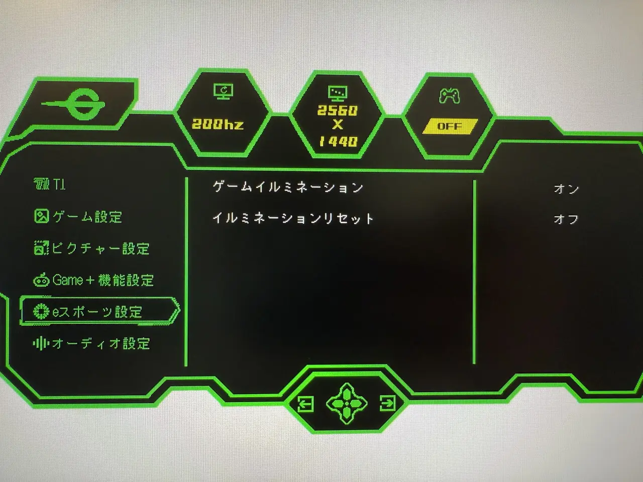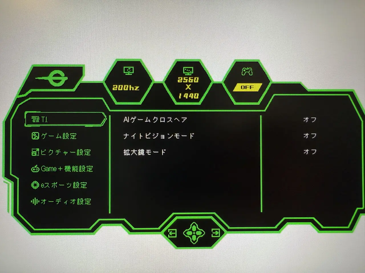 メニュー画面では、明るさやコントラストと言った一般的な設定から、ゲーミング用の機能まで、豊富な項目が用意されている。