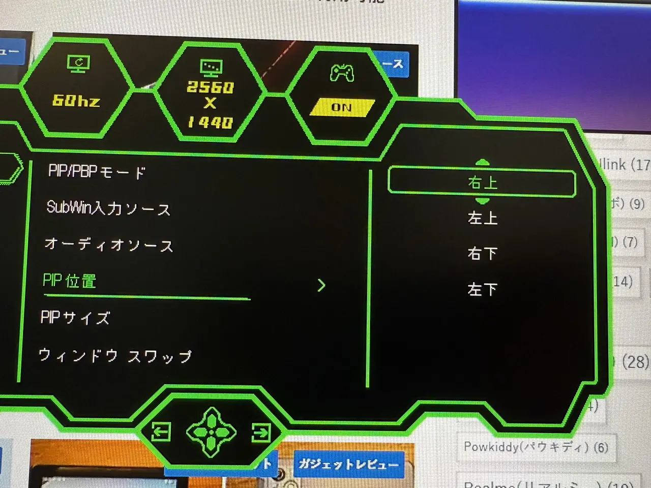 ▼モニター背面ポートに2つのデバイスを接続した状態で、PIP/PBPモードを起動。