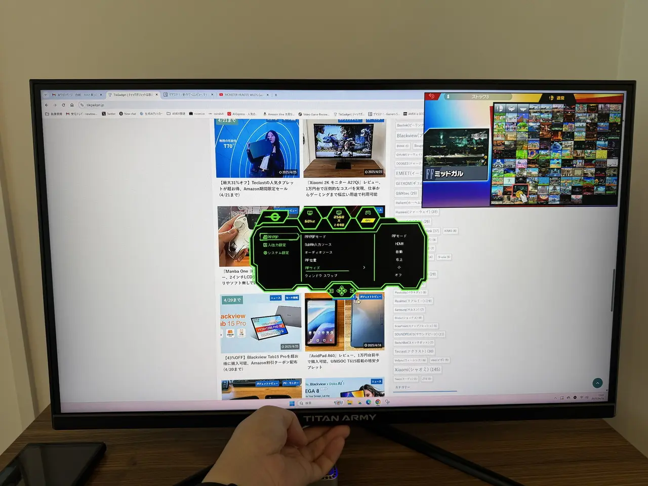 ただし、家庭用ゲーム機などの映像をPBPモードで表示した場合、アスペクト比がおかしくなってしまうため、おもに2台のPCを接続している場合に適したモードであると言える。