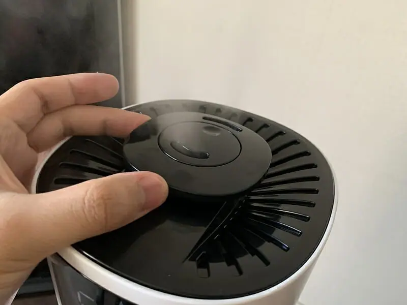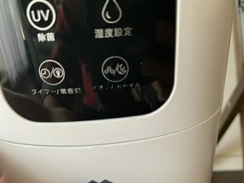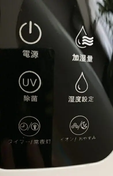 そして本体の電源アイコン、もしくはリモコンの電源ボタンを押すことで加湿器が起動する。