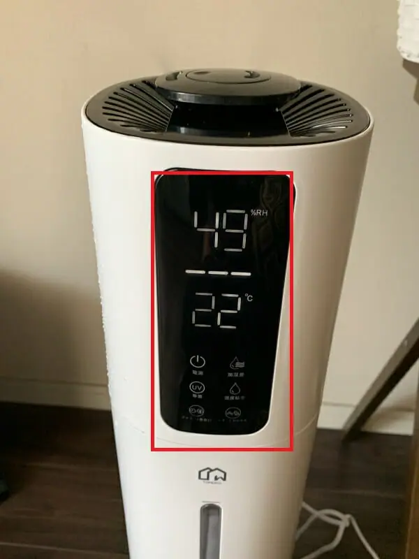 運転中は上部のディスプレイに、湿度・温度などの各種情報が表示される。