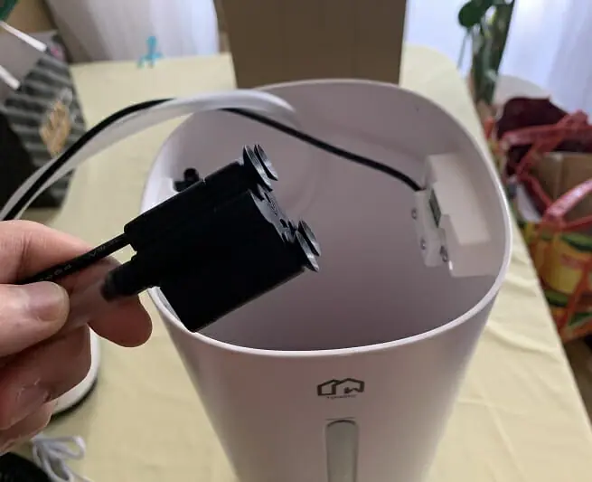 給水完了後の加湿器をコンセントに接続する。