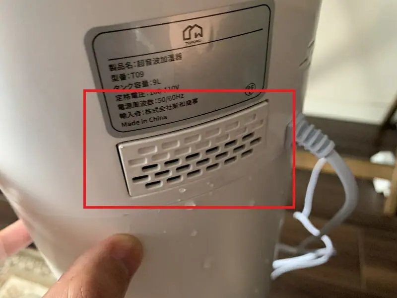 続いて 加湿器下部(大容量タンク)について。