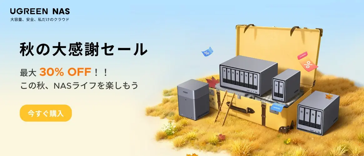 【最大30%OFF】UGREENのNASが大特価!Amazon感謝祭(10/10まで)