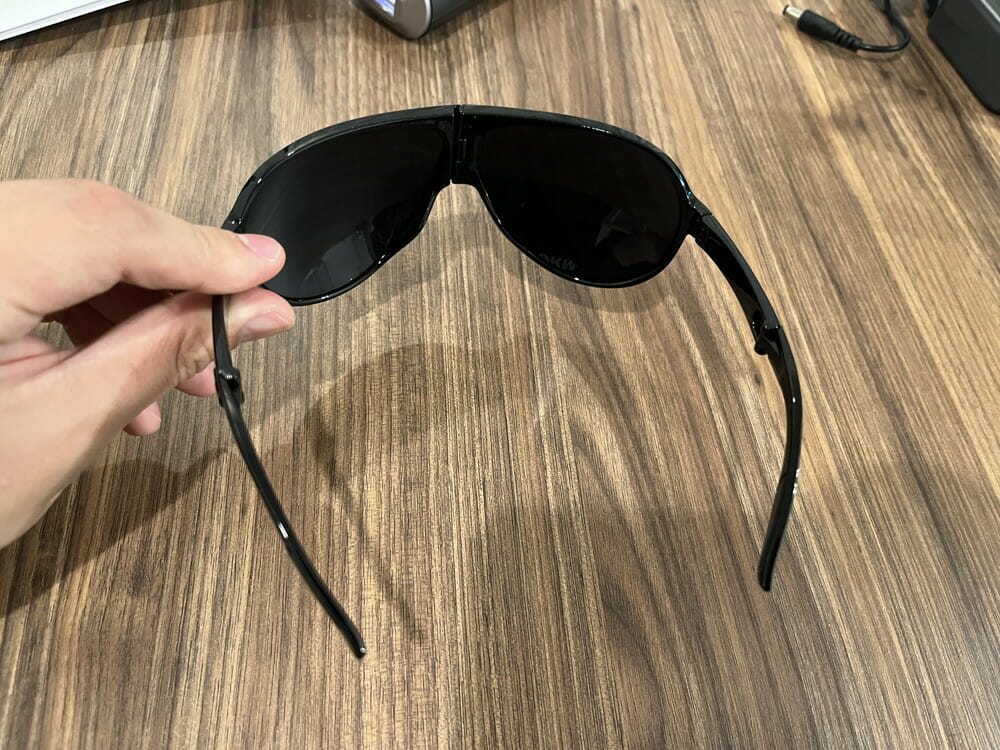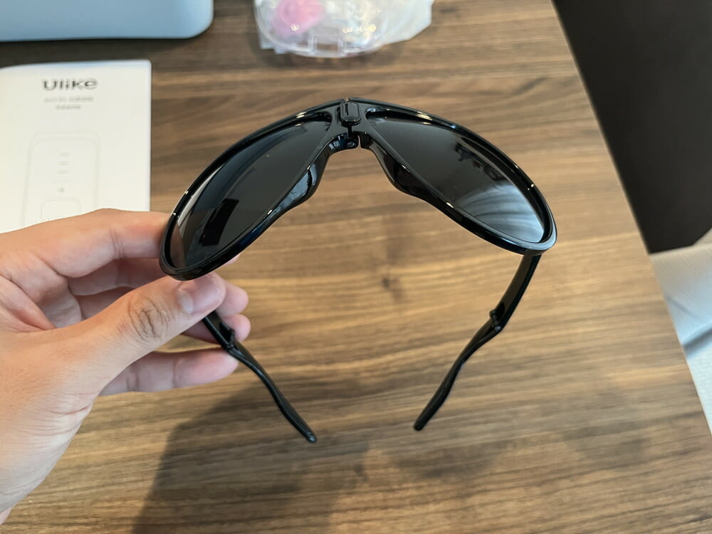 ▼照射時に目を保護するための折りたたみ式ゴーグルが付属。