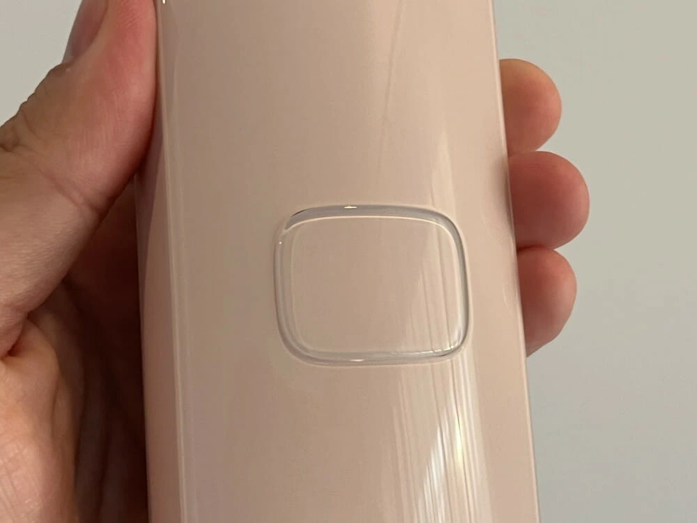 これにより、いちいち照射場所を変更するたびに照射ボタンを押しなおす必要がありません。また、脱毛器の照射面も大きめに設計されているため、短時間で広範囲の脱毛を行うことができました。