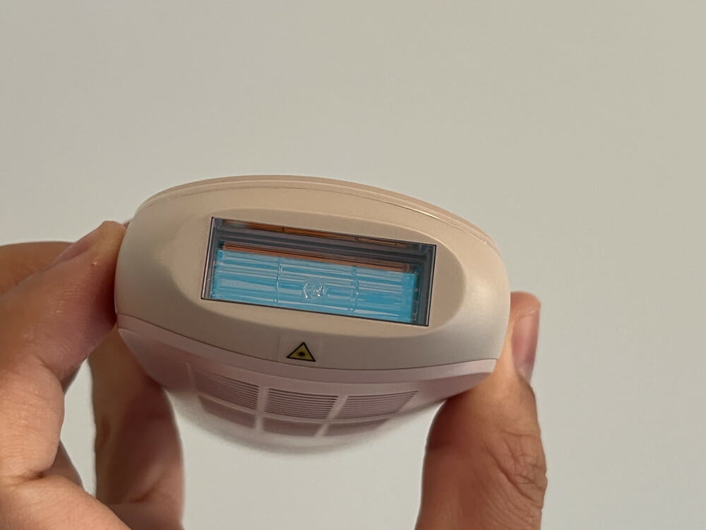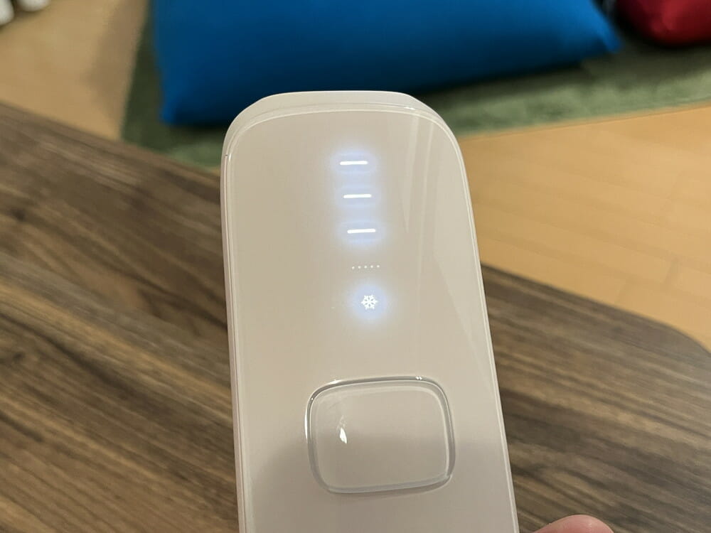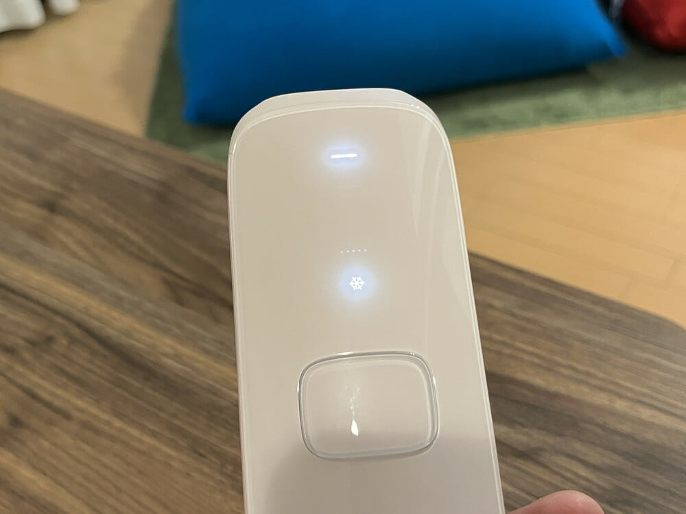 本製品は冷却機能を備えており、肌に当てる際に照射口周りが冷たくなります。これにより高出力で光を照射した際でも熱さや痛みを感じづらく、不快感を覚えることなく快適な脱毛を行うことができました。