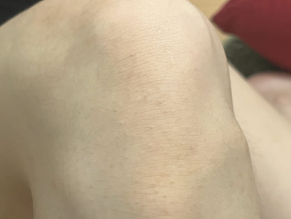 ▼使用開始前のヒザ。薄いムダ毛が無数に生えています。