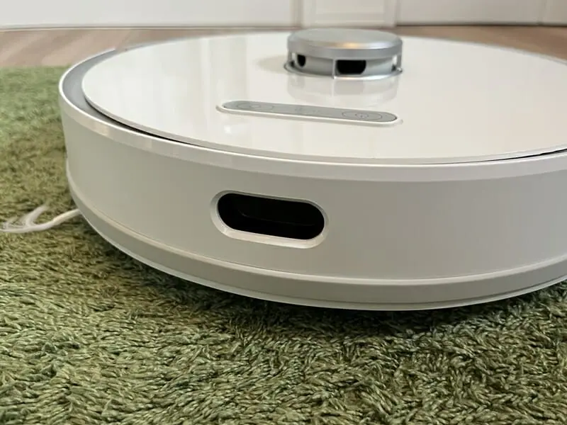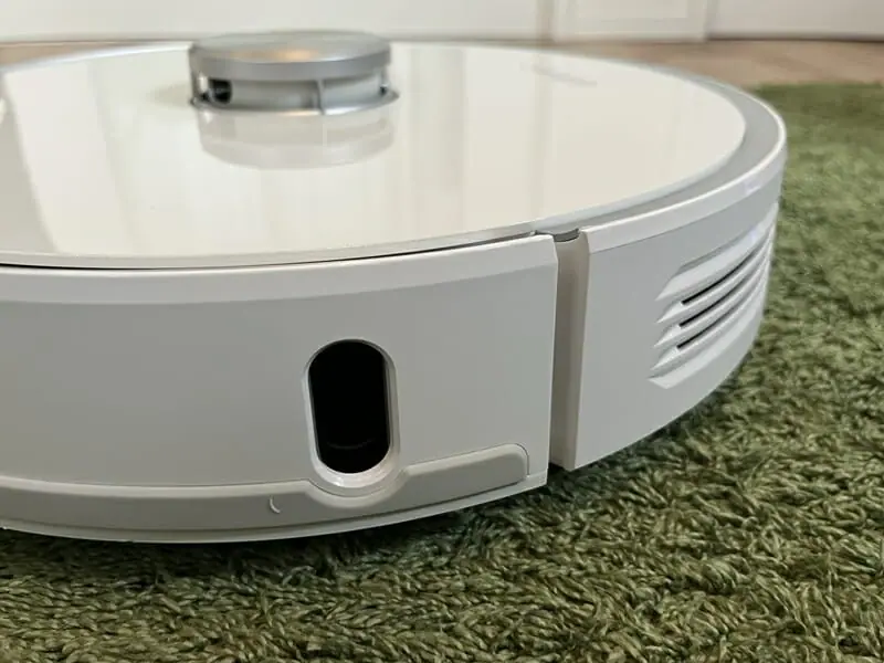 ▼そして前部側面、左右側面に計3つのセンサーが内蔵。障害物や部屋のカタチを認識して、効率的な走行を可能にする。