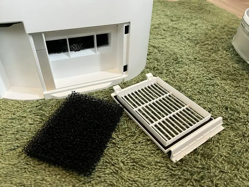 ロボット掃除機本体のダストボックスは、上述した通り簡単に取り外して掃除できるうえ、吸引したゴミ自体をベースへ移せるため、基本的に汚れが残りづらい設計となっている。
