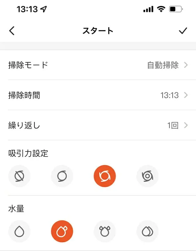 ▼吸引力や清掃予約といった設定を変更することも可能。