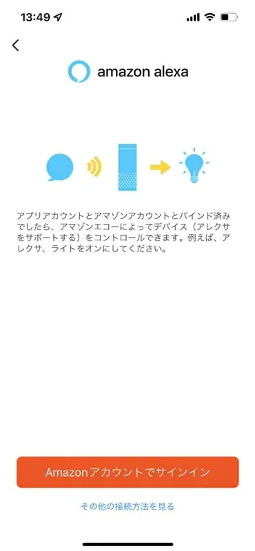 ▼Alexaを使用するためには、事前にアカウント接続を完了しておく必要がある。