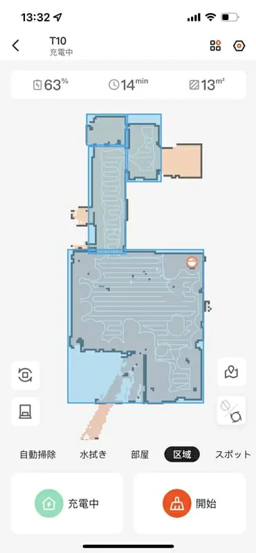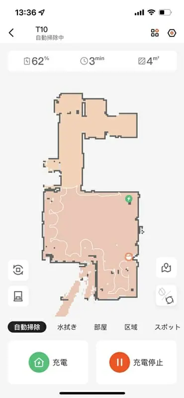 ロボット掃除機が奏功した場所は自動でエリア分けされる。