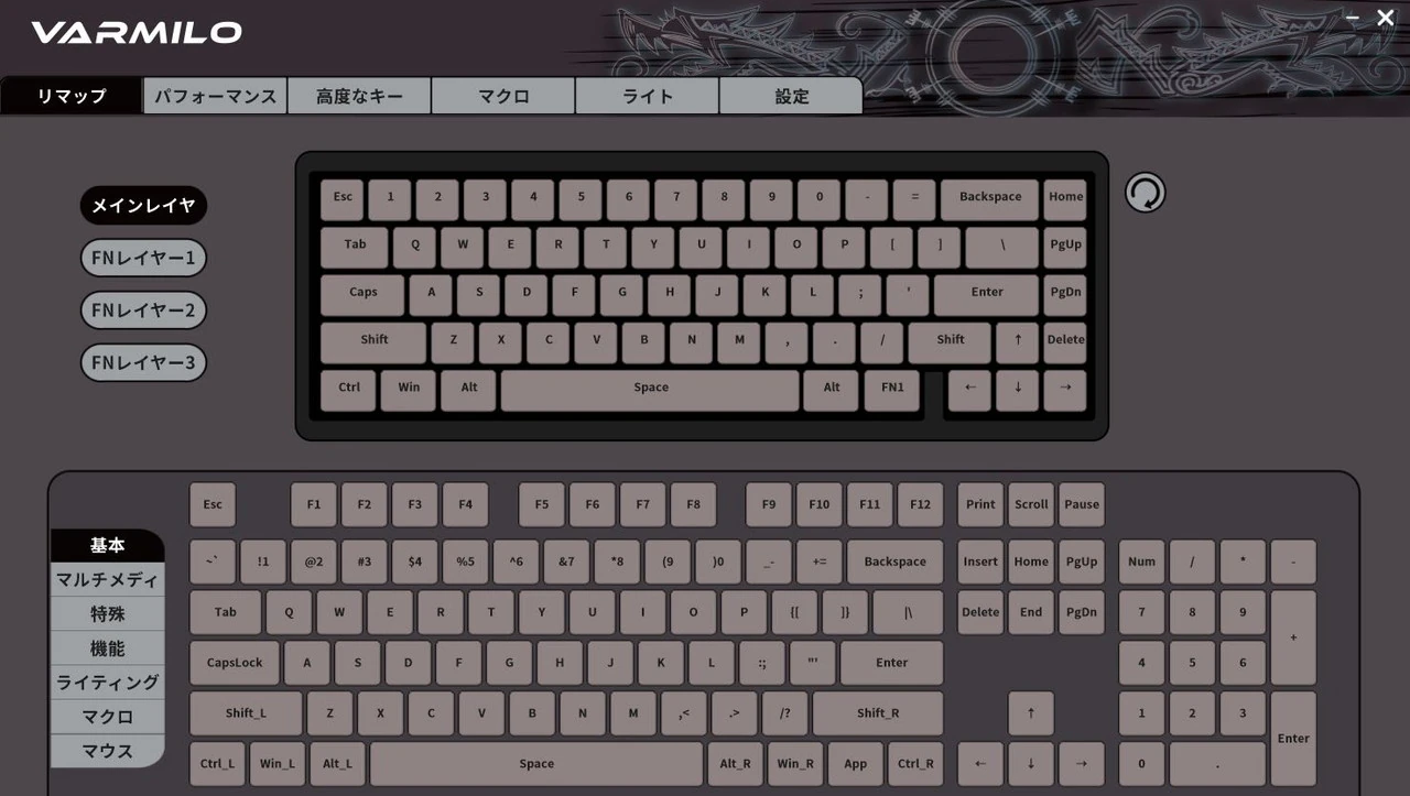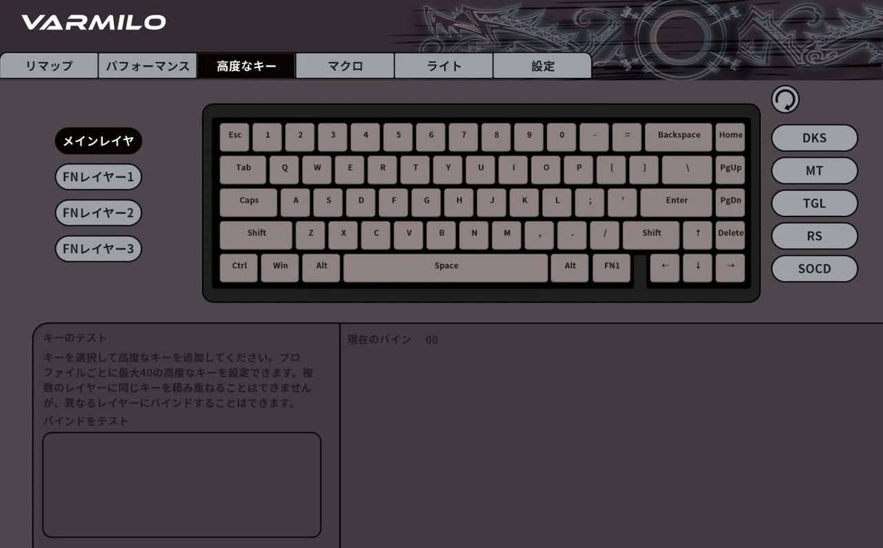 | 主要機能 | ・Rapid Triggerモード:0.1 mmのキー解放で素早く反応 ・Dynamic Keystroke (DKS):1つのキーで最大4つのアクションが可能 ・ホール効果技術:<0.01 mmの高精度エラー解決 |