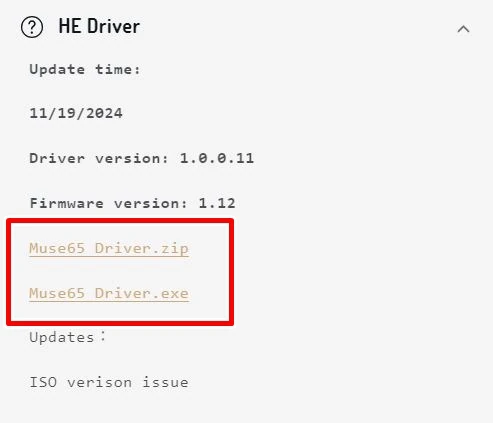 上記リンクにアクセスし、"HE Driver" から .zip もしくは .exe のいずれかをダウンロード。