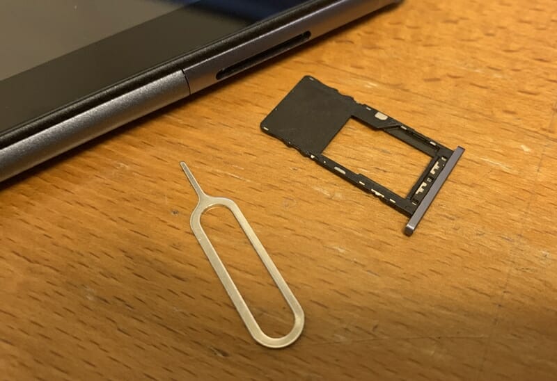 ▼付属のピンを挿し込むことで、カードスロットを開けてマイクロSDカードを挿入することが出来る。