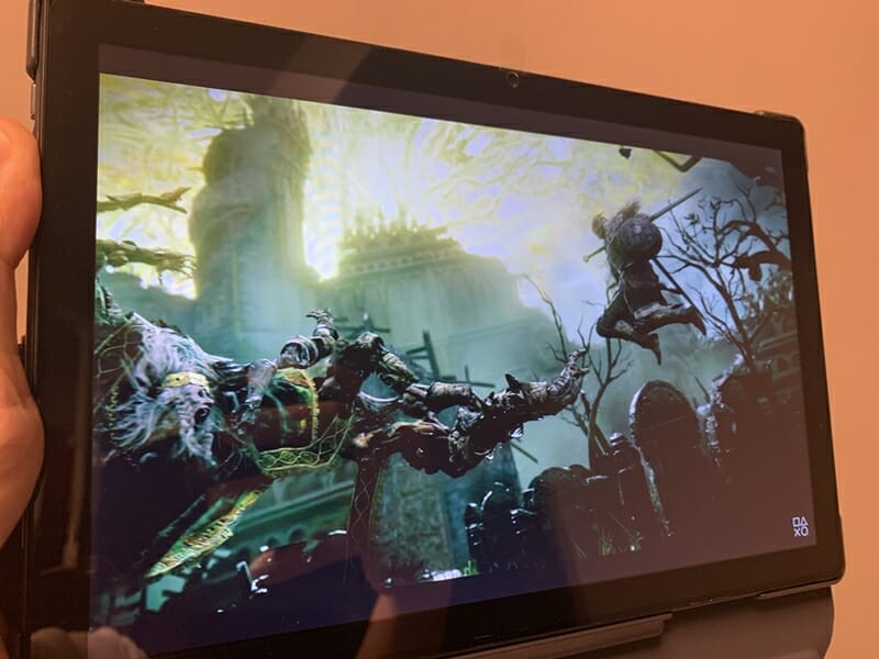 ▼ちなみに、キーボードケースを装着したままでも、タブレットのように持ち上げて使用することは十分に可能だ。